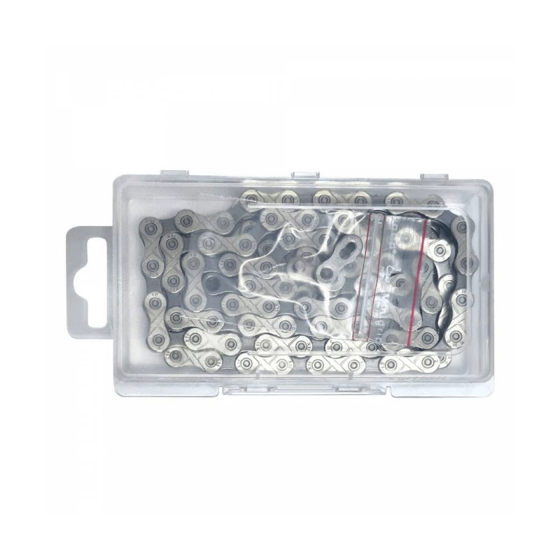 Casi todas las cadenas KMC se suministran con un cierre de cadena. El montaje es muy fácil y se garantiza una conexión segura. Para acortar la cadena a la longitud adecuada, todo lo que necesita es una herramienta estándar para cadenas. Para bloquear y desbloquear la cadena, necesitas un par de alicates de punta de cadena.